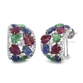 Tutti Frutti Multi Stone Leaf Diamond Gold Earrings