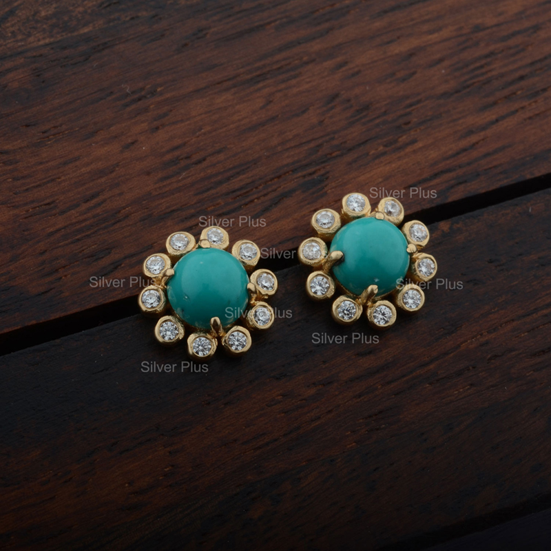 Real Turquoise Stud Diamond Earring